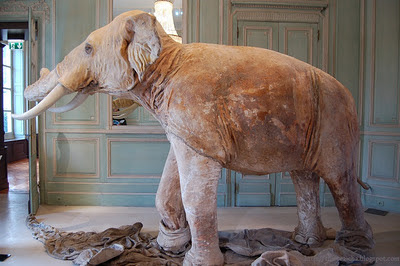 Dès l'entrée, "l'ombre blanche", oeuvre de Huang Yong Ping, nous invite à laisser tomber, comme une vieille pelisse, nos préjugés, nos idées toutes faites, ce que nous prenons pour connaissance, afin de nous préparer à muer, à nous métamorphoser tel Bouddha (éléphant blanc). Connaissances, croyances, tout cela ne serait-il pas qu'illusion ?