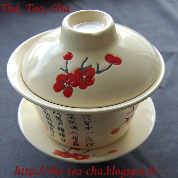 Puis j'ajoute l'eau chaude jusqu'à remplir le zhong. (D'ailleurs, savez-vous qu'on le nomme également, voire plus fréquemment, gaiwan?) A l'aide du couvercle, je m'amuse à faire danser les feuilles. C'est si captivant que j'en oublie de veiller au temps d'infusion! Rien de grave, je pense que ça reste (à peine) en dessous de la minute.